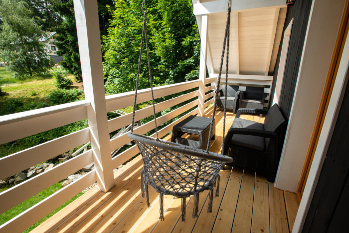W cieplejsze dni nie ma nic przyjemniejszego od spędzenia miłego popołudnia na tarasie wraz z rodziną lub przyjaciółmi. Powierzchnia tarasu to ok. 9 m2. Przy domu znajduje się betonowy grill, do użytku własnego. Przy sprzyjającej pogodzie możecie więc przygotować ulubione potrawy na gorącym ruszcie..(dotyczy tylko wersji domu B)