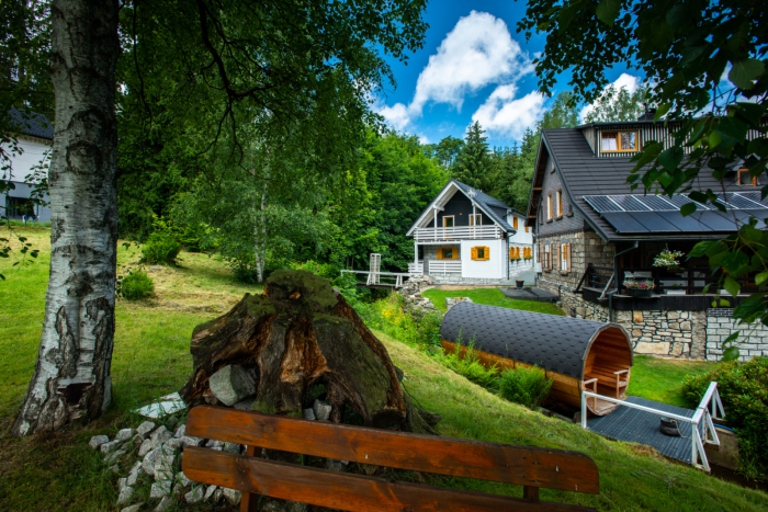 SAUNA - dla tych którzy jednak myślą, iż zmarzną korzystając z bani ruskiej przygotowana jest sauna fińska by się dobrze wygrzać zimowymi wieczorami i nie tylko. Sauna znajduje się na zewnątrz i stoi tuż nad samą rzekę, a ogromna szyba o przekroju 200 cm daje niesamowity widok na strumień.